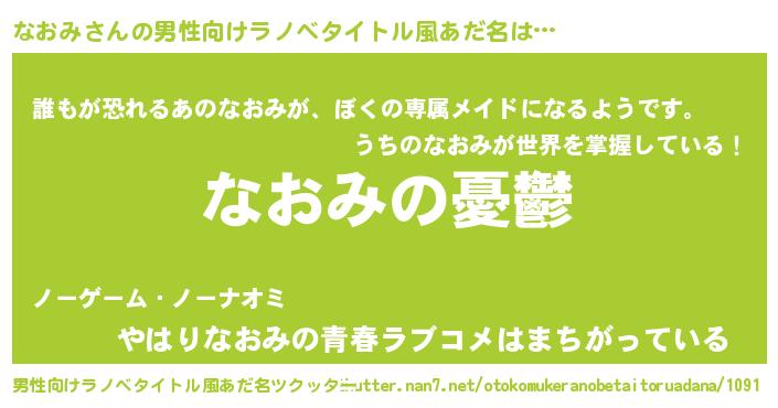 | 胡散臭い通販商品みたいなあだ名 | 『モテモテ間違いなしブレスレット…その名も「なおみ」』 |