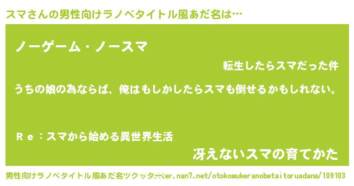 | 胡散臭い通販商品みたいなあだ名 | 『運命の人と巡り会える高級そうな絵画…その名も「スマ」』 |