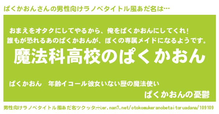 ぱくかおんさんの男性向けラノベタイトル風あだ名をツクッター!