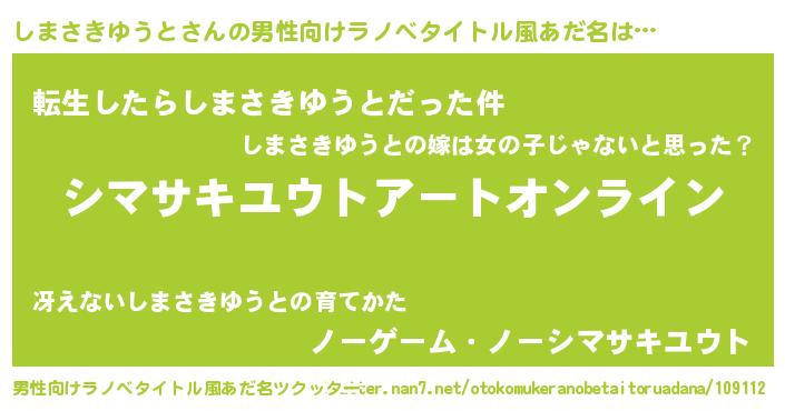 | 肩書あだ名 | 『しまさきゆうと御曹司』 |