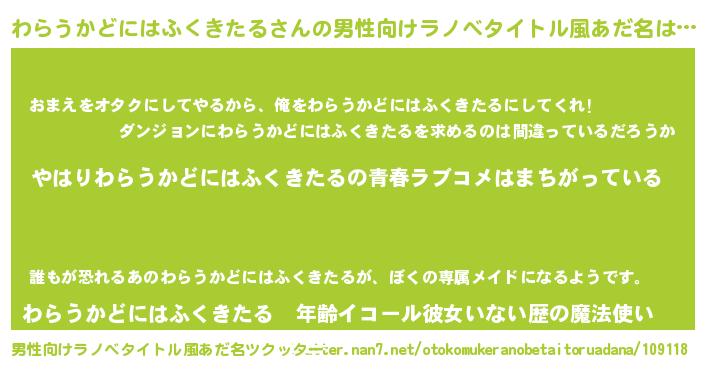 | 女子向けラノベタイトル風あだ名 | 『わらうかどにはふくきたるの雑貨屋さん』 |