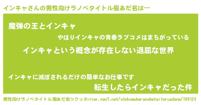 | 胡散臭い通販商品みたいなあだ名 | 『来世でも幸せになれる招き猫…その名も「インキャ」』 |