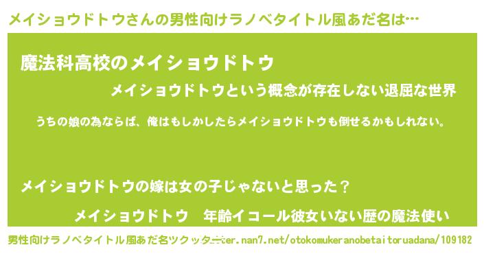 | ファンタジー風あだ名 | 『エターナルメイショウドトウー』 |