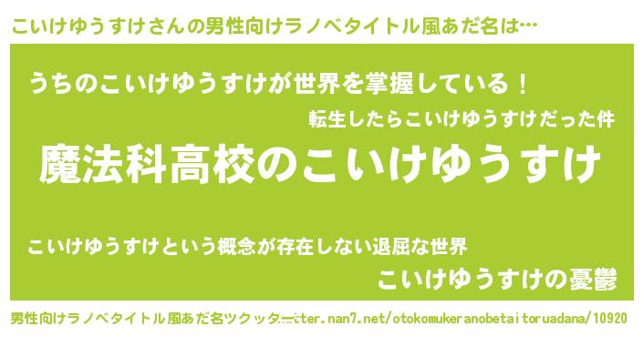 | 女子向けラノベタイトル風あだ名 | 『こいけゆうすけアンティーク』 |