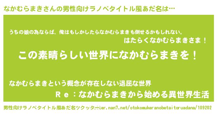 | 意味不明あだ名 | 『住所不定無職なかむらまき(7歳)』 |