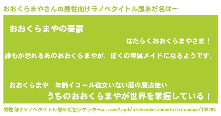 | 女子向けラノベタイトル風あだ名 | 『異世界でカフェおおくらまやを開店しました。』 |