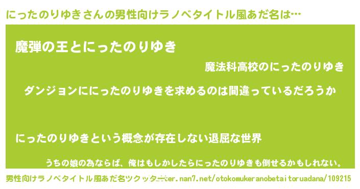 | 胡散臭い通販商品みたいなあだ名 | 『伝統あるサプリメント…その名も「にったのりゆき」』 |