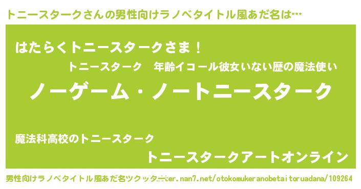 | ヒーロー風カッコイイあだ名 | 『天空の使者トニースターク』 |