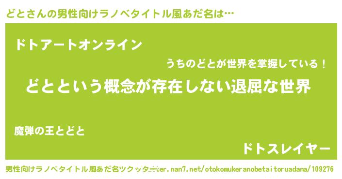 | 女子向けラノベタイトル風あだ名 | 『異世界で失敗しない100のどと』 |