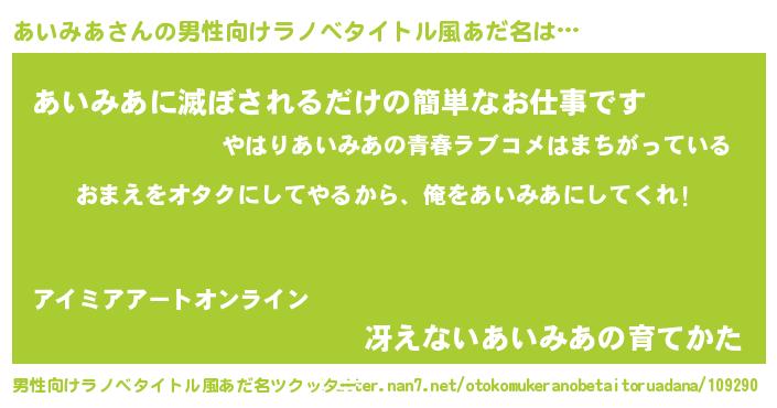 | 女子向けラノベタイトル風あだ名 | 『あいみあ夫妻のなれそめ』 |