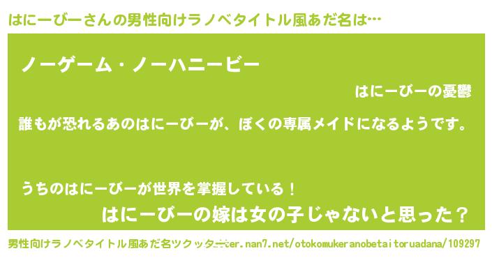 | 意味不明あだ名 | 『永久保存はにーびー』『自称はにーびー』 |