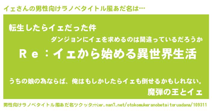 | 女子向けラノベタイトル風あだ名 | 『イェストレイドッグス』『イェの婚約者』 |