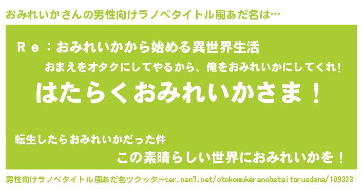 | 胡散臭い通販商品みたいなあだ名 | 『ガンによく効くアガリクス…その名も「おみれいか」』 |