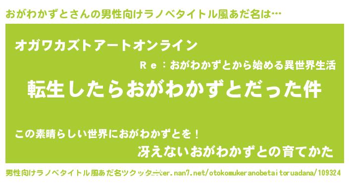 | 胡散臭い通販商品みたいなあだ名 | 『モテモテ間違いなしブレスレット…その名も「おがわかずと」』 |