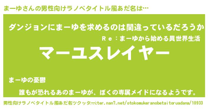 | 胡散臭い通販商品みたいなあだ名 | 『信頼と実績のネックレス…その名も「まーゆ」』 |