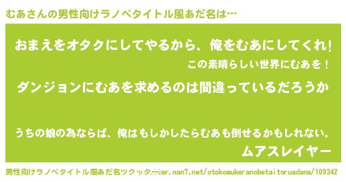 | 女子向けラノベタイトル風あだ名 | 『むあの卵を拾いまして』『むあ恋絵巻』 |