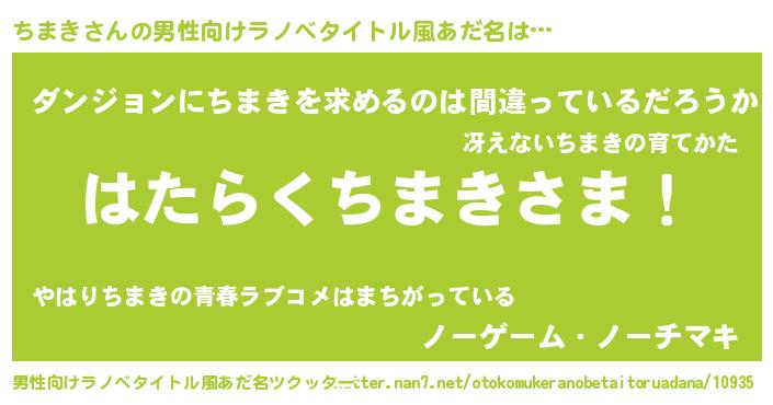 | ポケモン風あだ名 | 『チマゴンZ』『ヒチマキ』 |