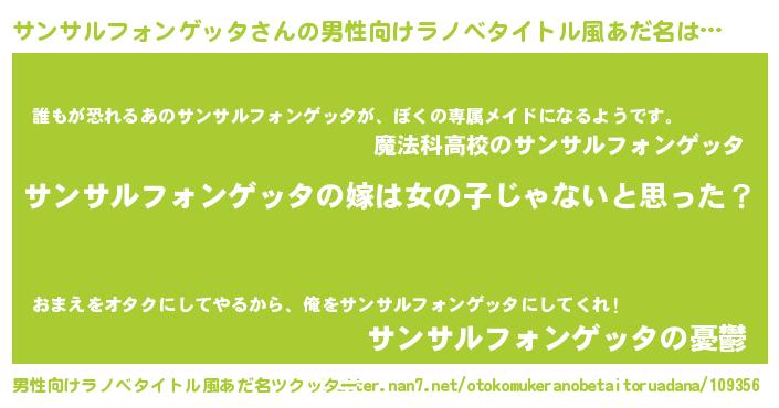 サンサルフォンゲッタさんの男性向けラノベタイトル風あだ名をツクッター!
