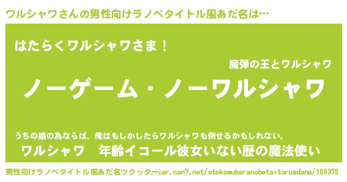 | 女子向けラノベタイトル風あだ名 | 『死神ワルシャワの再婚』 |