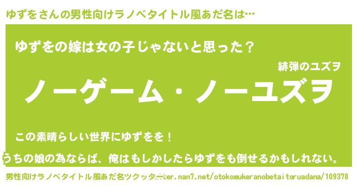 | 女子向けラノベタイトル風あだ名 | 『死神ゆずをの再婚』『ゆずをの婚約者』 |