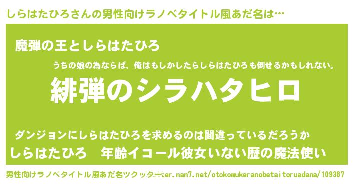 | 意味不明あだ名 | 『住所不定無職しらはたひろ(62歳)』 |