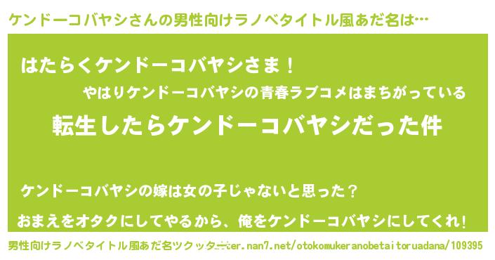 | ヘコむあだ名 | 『豆乳』『ケンっ子』『ケンにゅー』 |