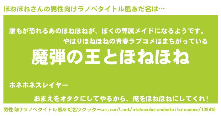 | 意味不明あだ名 | 『住所不定無職ほねほね(7歳)』 |
