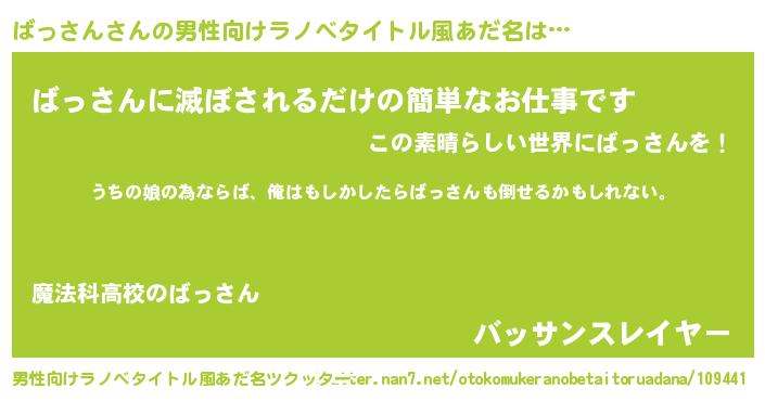 | 女子向けラノベタイトル風あだ名 | 『ばっさんの婚約者』 |
