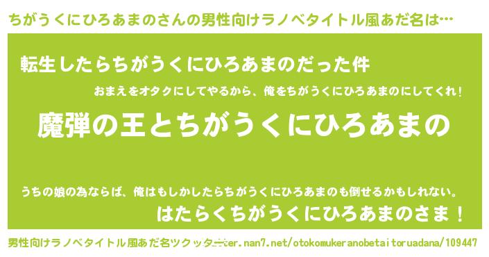 | 意味不明あだ名 | 『住所不定無職ちがうくにひろあまの(86歳)』 |