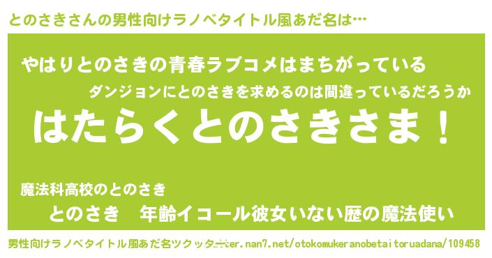 | 意味不明あだ名 | 『とのさきフォーエバー』『自称とのさき』 |
