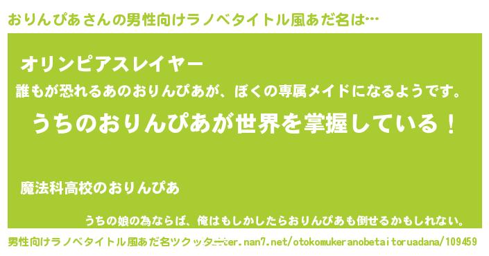 | 胡散臭い通販商品みたいなあだ名 | 『運命の人と巡り会える高級そうな絵画…その名も「おりんぴあ」』 |