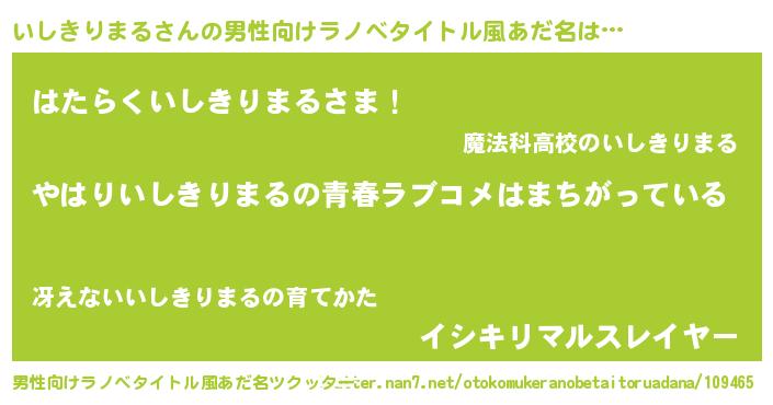| 女子向けラノベタイトル風あだ名 | 『いしきりまるの雑貨屋さん』 |