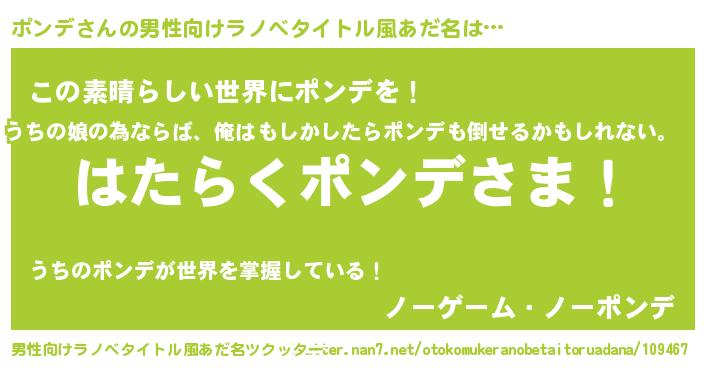 | ヒーロー風カッコイイあだ名 | 『仮面ポンダー』『天空の使者ポンデ』 |