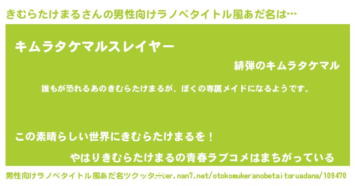 | 胡散臭い通販商品みたいなあだ名 | 『前代未聞の健康食品…その名も「きむらたけまる」』 |