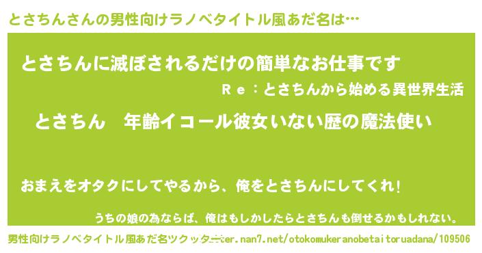 | 女子向けラノベタイトル風あだ名 | 『とさちんの玉の輿計画!』 |
