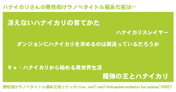 | 女子向けラノベタイトル風あだ名 | 『ハナイカリは平凡を望む』 |