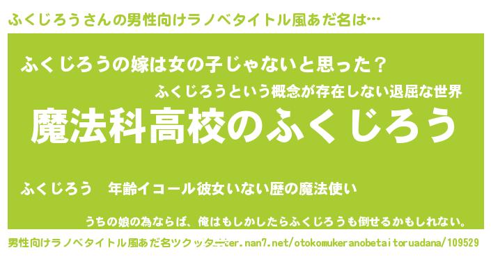 ふくじろうさんの男性向けラノベタイトル風あだ名をツクッター!