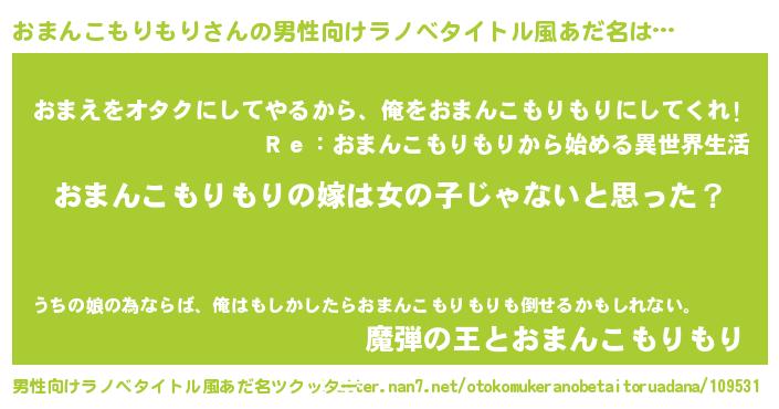 | 女子向けラノベタイトル風あだ名 | 『おまんこもりもりの卵を拾いまして』 |