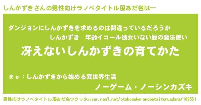 | 女子向けラノベタイトル風あだ名 | 『シンデレラしんかずき家の靴箱館』 |