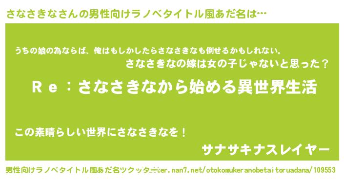 | 女子向けラノベタイトル風あだ名 | 『闇のさなさきな』『さなさきなの婚約者』 |