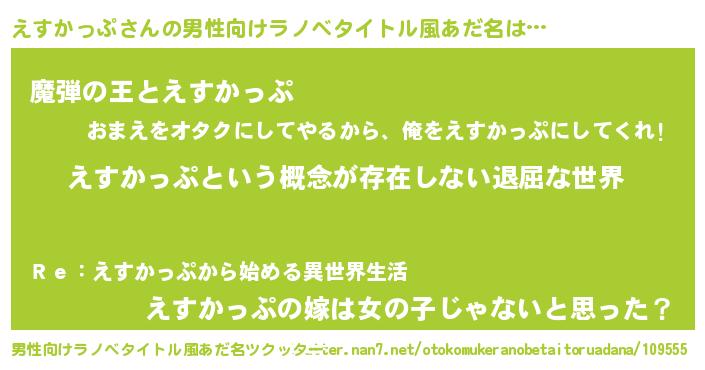 | 胡散臭い通販商品みたいなあだ名 | 『絶対に幸福をもたらす水素水…その名も「えすかっぷ」』 |