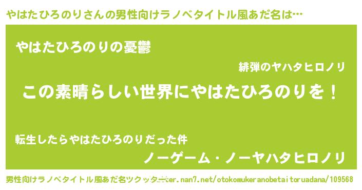 | 女子向けラノベタイトル風あだ名 | 『悪役やはたひろのりに転生したようですが、知った事ではありません』 |
