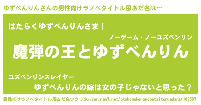 | 女子向けラノベタイトル風あだ名 | 『ゆずべんりんが死なない童話 林檎のゆずべんりんの診療簿』 |