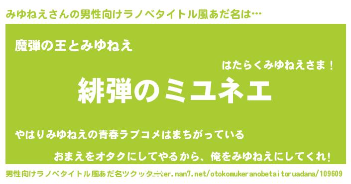 | 女子向けラノベタイトル風あだ名 | 『シンデレラみゆねえ家の靴箱館』 |