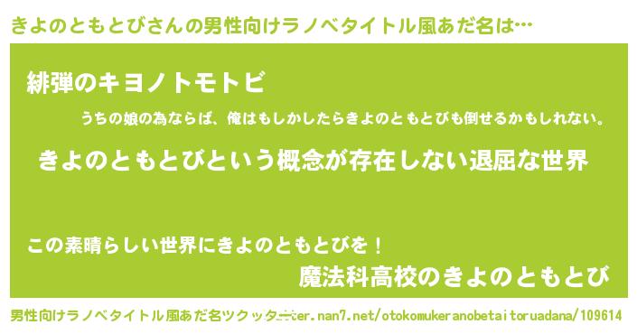 | 意味不明あだ名 | 『永久保存きよのともとび』 |