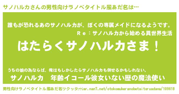 | 意味不明あだ名 | 『永久保存サノハルカ』『自称サノハルカ』 |