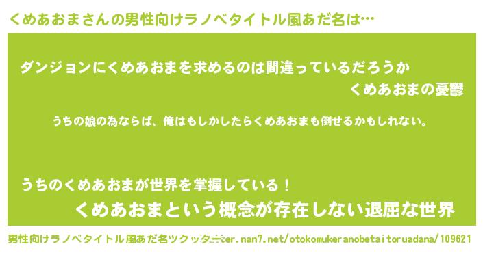 | 女子向けラノベタイトル風あだ名 | 『くめあおまの婚約者』 |