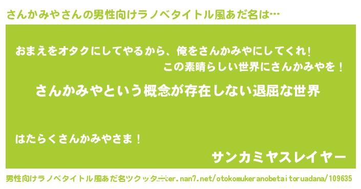 | ヘコむあだ名 | 『さんかみや(爆)』『さんっぺ』 |