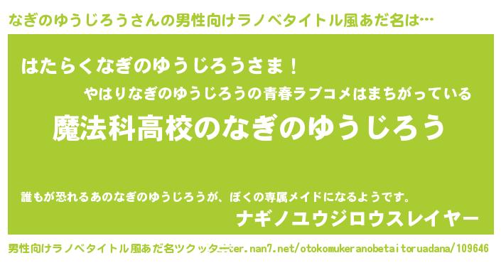 | 意味不明あだ名 | 『自称なぎのゆうじろう』 |