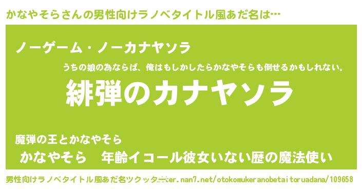 | ヒーロー風カッコイイあだ名 | 『正義の使者かなやそら』『仮面カナダー』 |